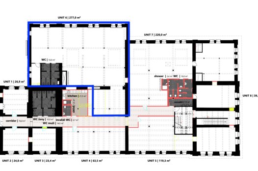 A7 Office Center is a modern office and business complex located in Prague's Holešovice district. The complex offers office and commercial space in 4 buildings on an area of 15,150 m² and 197 comfortable garage spaces for the needs of tenants. The dominant feature of the entire complex is the reconstructed building of the former Holešovice Brewery, known as the First Bourgeois Brewery, which together with the reconstructed former administrative building of the brewery and 2 new buildings form an architecturally exceptional complex combining modern office and commercial space with the supporting elements of the late 19th century. The building offers excellent transport accessibility by car and public transport. Tram stops U Průhonu and Maniny, metro C - Vltavská, Holešovice and metro B - Palmovka are located nearby. Great accessibility by car is guaranteed by easy connection to the Magistrala and the City Ring Road. There are 48 outdoor parking spaces for visitors.