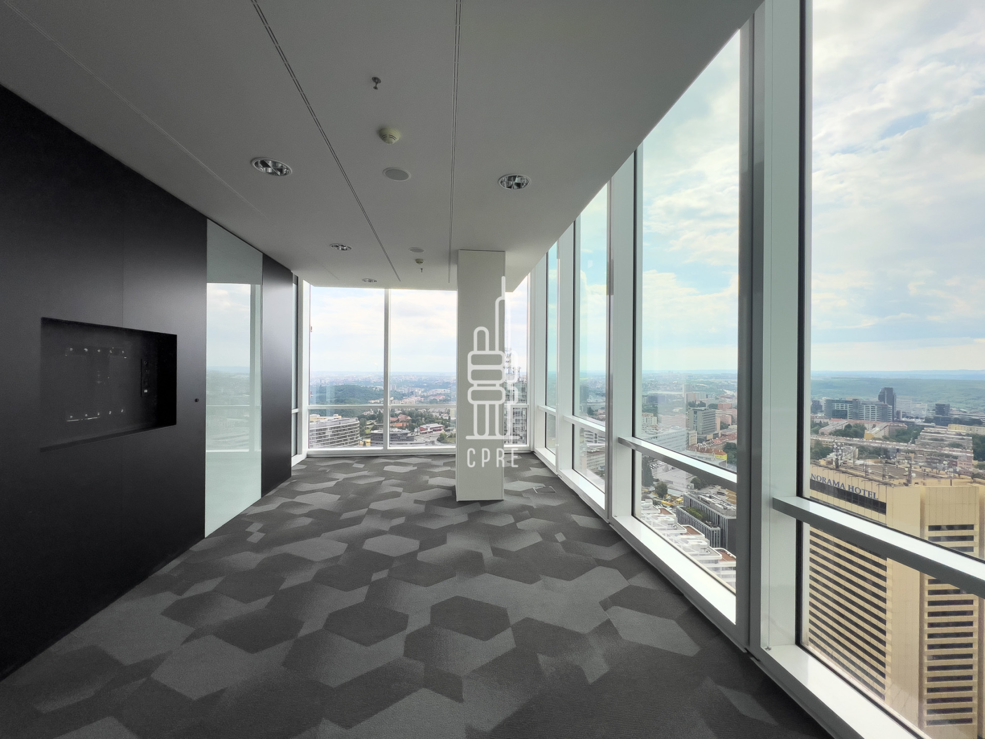 City Tower offers exclusive office space with an unmistakable view of Prague. The modern landmark in Prague's Pankrác district was designed by architect Richard Meier and meets the highest technical and design standards. The building offers up to 49,000 m2 of office space on 27 above-ground and 3 underground floors and 800 parking spaces in underground garages. City Tower offers excellent public transport accessibility, with bus, tram and metro stops C - Pankrác nearby. Easy accessibility by car is provided by the North-South motorway and the Prague ring road. The surrounding area has full civic amenities, including hotels, the Arkády Pankrác shopping centre, many restaurants and cafes. The building offers conference facilities, a café, a canteen, and a Michelin restaurant with a view of the Prague skyline. The City Tower has been awarded the prestigious BREEAM (Building Research Establishment Environmental Assessment Method) certificate.