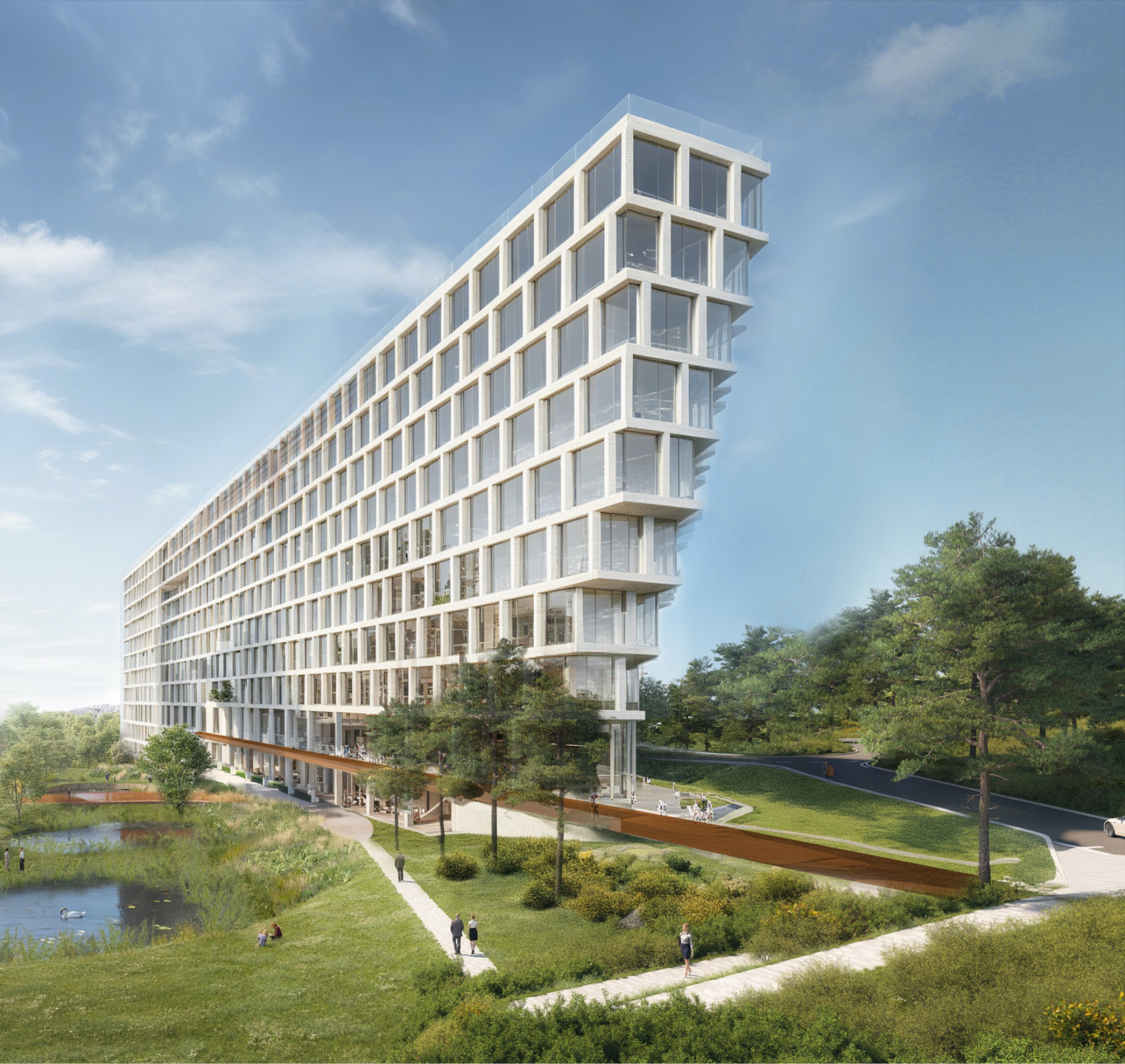 The Sequoia office building represents a unique combination of a vibrant city and the tranquility of nature in the form of the unique Krč Forest and the revitalized Roztyl Park. Modern technologies – heat pumps, photovoltaics, air ionizers, outdoor blinds eliminating heat gains from the sun, etc. – ensure long-term sustainable economic operation. Sequoia will offer 33,000 m² of office space for rent on eleven above-ground floors. Some of the offices on the western side of the building will be equipped with loggias. The building will also include a conference hall. The top, twelfth floor will feature a rooftop terrace with a beautiful view. The building will provide its tenants with 488 underground parking spaces, bicycle storage rooms with facilities, and is also prepared for electromobility. For convenient access by car, a direct exit from the Prague Ring Road is planned. The building will have a BREEAM Outstanding certificate and will meet the parameters of the EU TAXONOMY. The design is by the A8000 studio, and the first tenants will be able to move into the state-of-the-art offices with flexible layouts at the turn of 2027/2028.