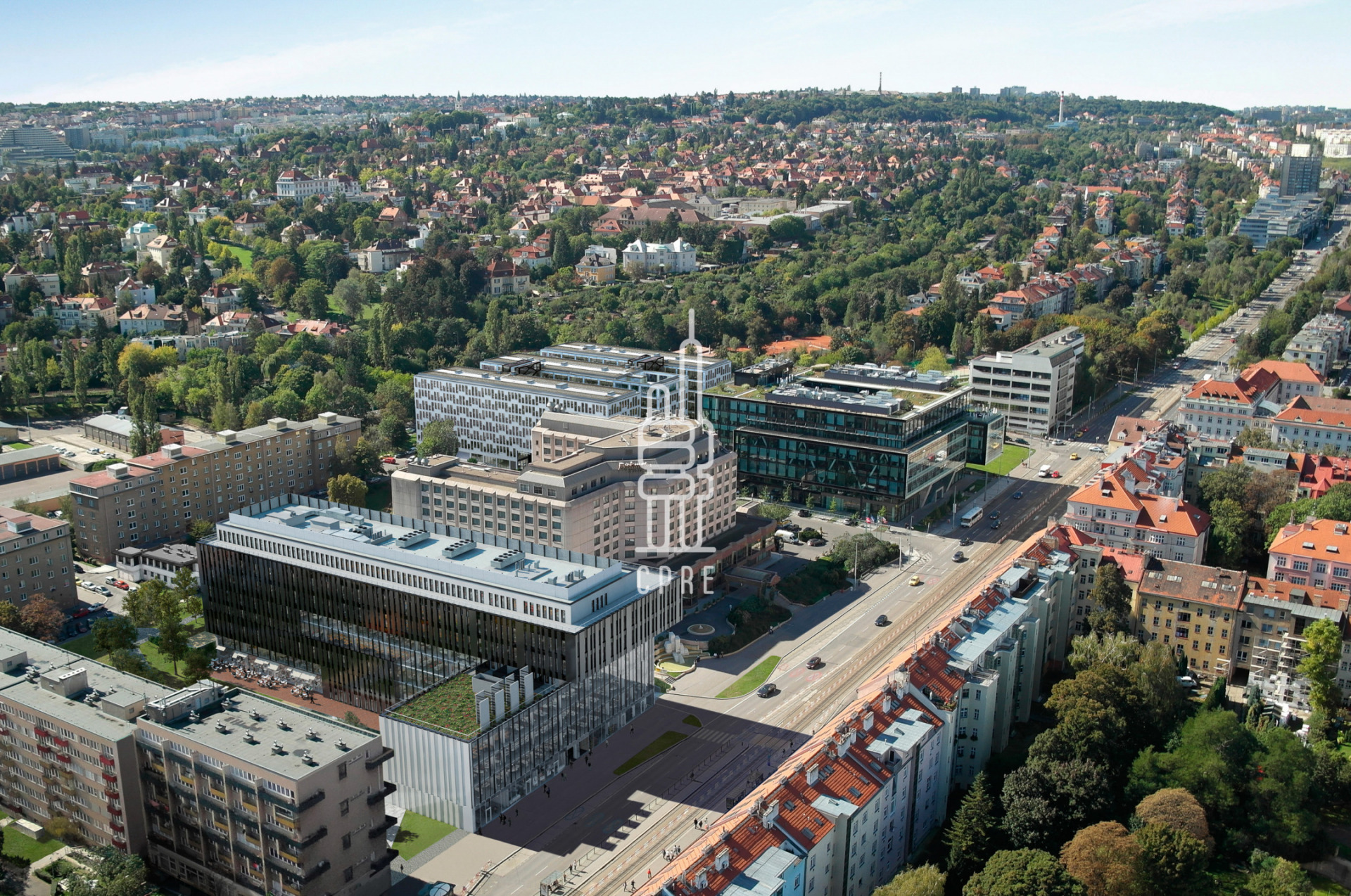 The building is easily accessible by public transport, located just a few steps from the tram stop and Dejvicka metro station. Easy access by car to the Václav Havel Airport and the city centre is provided by the connection to the Prague inner ring road.