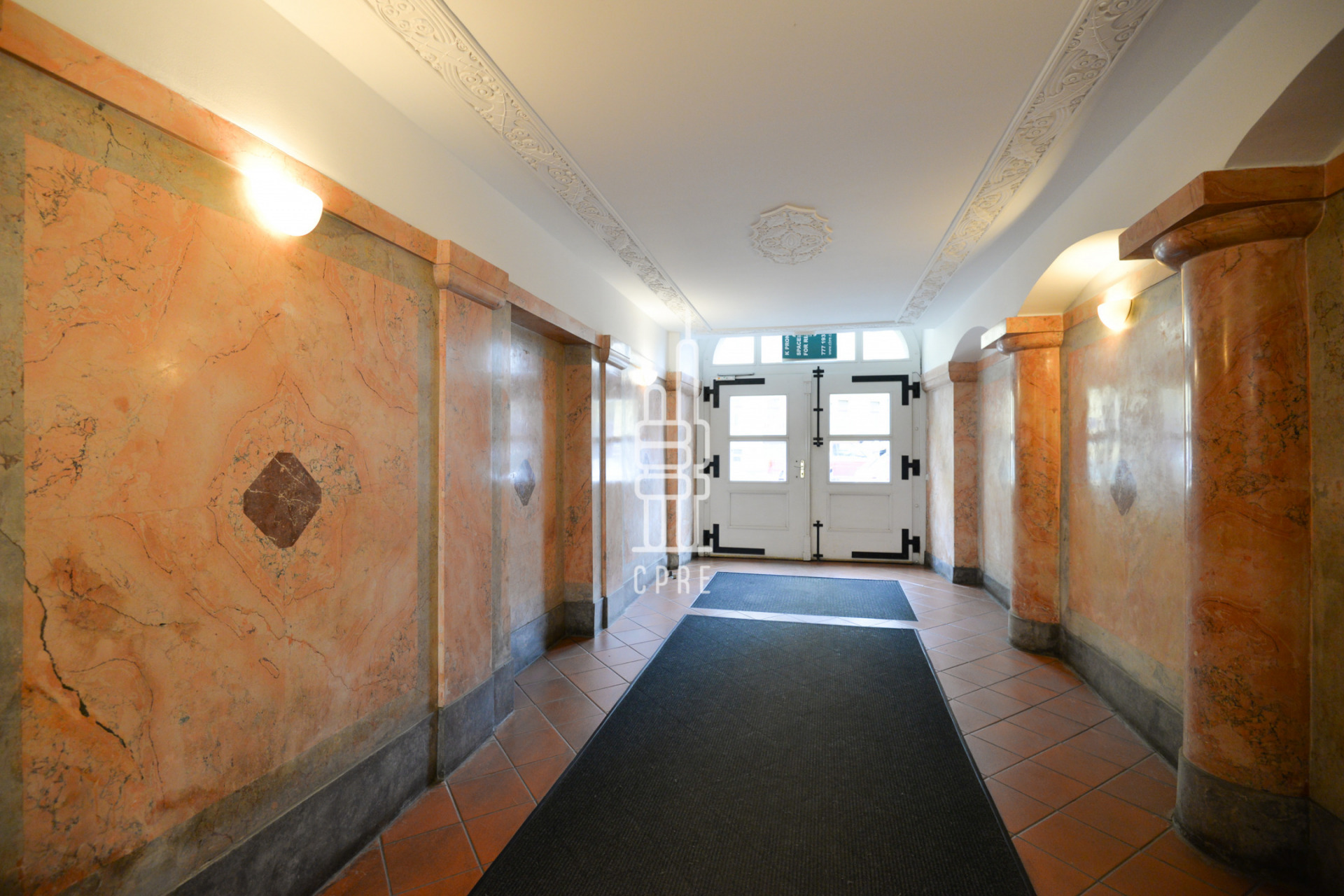 The building consists of 3 floors of office space, 2 additional street level retail shops and 1 courtyard of retail/office space. The total building area is 3,856 sq ft. The garage offers 17 parking spaces. The building has 24/7 hour security and reception. Completely renovated corner building in Myslíkova and Spálená streets is located in the very center of the city on the border of Prague 1 and 2 with connections to the Wenceslas Square business zone and the Karlovo náměstí administrative region. The civic amenities are excellent. The location is very accessible. There are many tram lines. Wenceslas Square (metro station Můstek - line A and B) and Karlovo náměstí (metro station Karlovo náměstí - line B) are only 3-7 minutes away on foot. There is a direct connection to the motorway and also to the city ring road. The rooms are air-conditioned and there are plenty of kitchens and toilets for each unit. The inner courtyard with seating is also pleasant. The garage is accessible from Cerna Street.