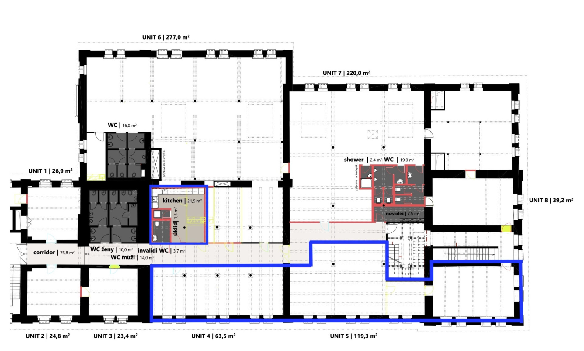 Service charges: 85 CZK per sqm/month