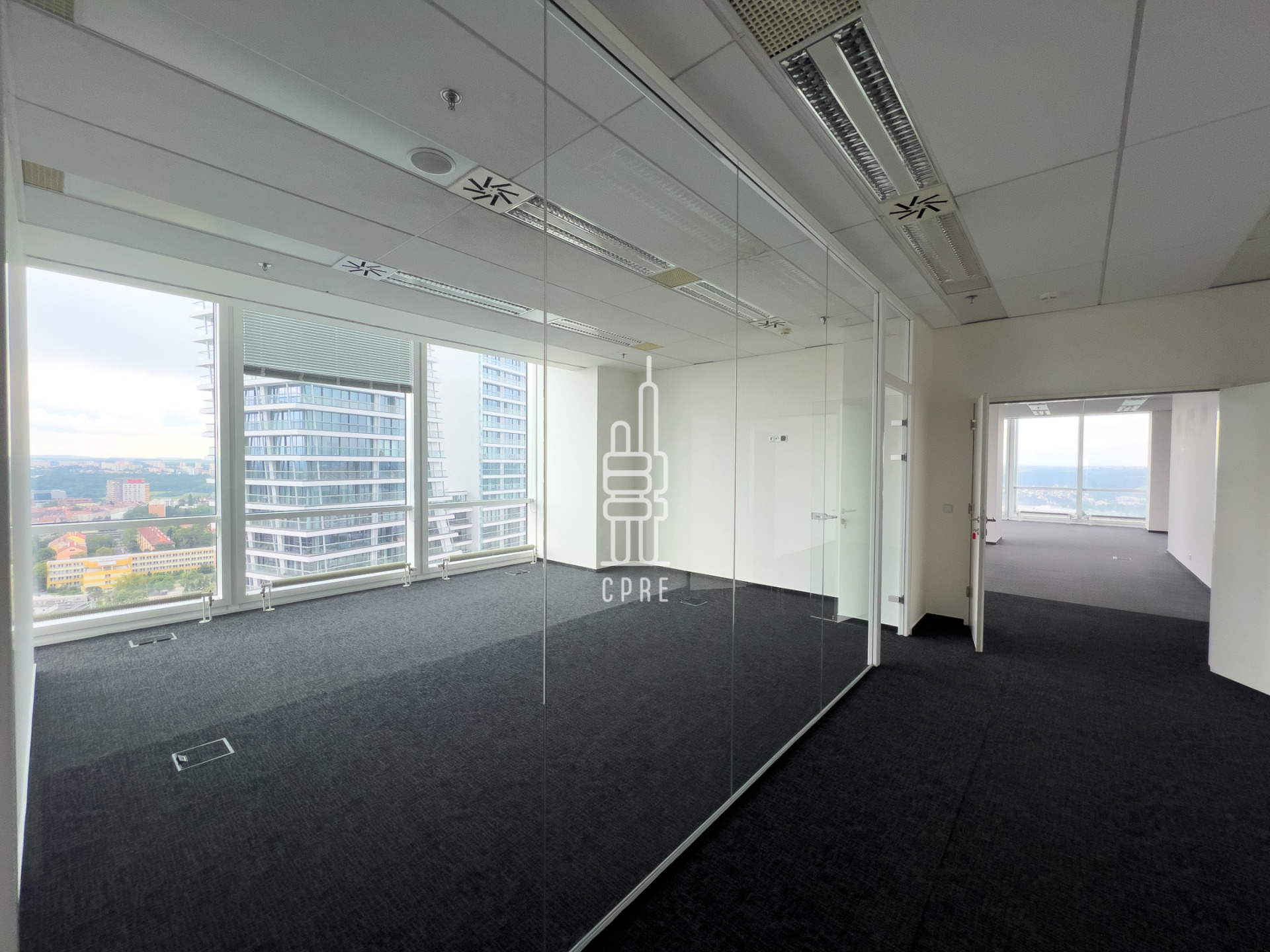 City Tower offers exclusive office space with an unmistakable view of Prague. The modern landmark in Prague's Pankrác district was designed by architect Richard Meier and meets the highest technical and design standards. The building offers up to 49,000 m2 of office space on 27 above-ground and 3 underground floors and 800 parking spaces in underground garages. City Tower offers excellent public transport accessibility, with bus, tram and metro stops C - Pankrác nearby. Easy accessibility by car is provided by the North-South motorway and the Prague ring road. The surrounding area has full civic amenities, including hotels, the Arkády Pankrác shopping centre, many restaurants and cafes. The building offers conference facilities, a café, a canteen, and a Michelin restaurant with a view of the Prague skyline. The City Tower has been awarded the prestigious BREEAM (Building Research Establishment Environmental Assessment Method) certificate.