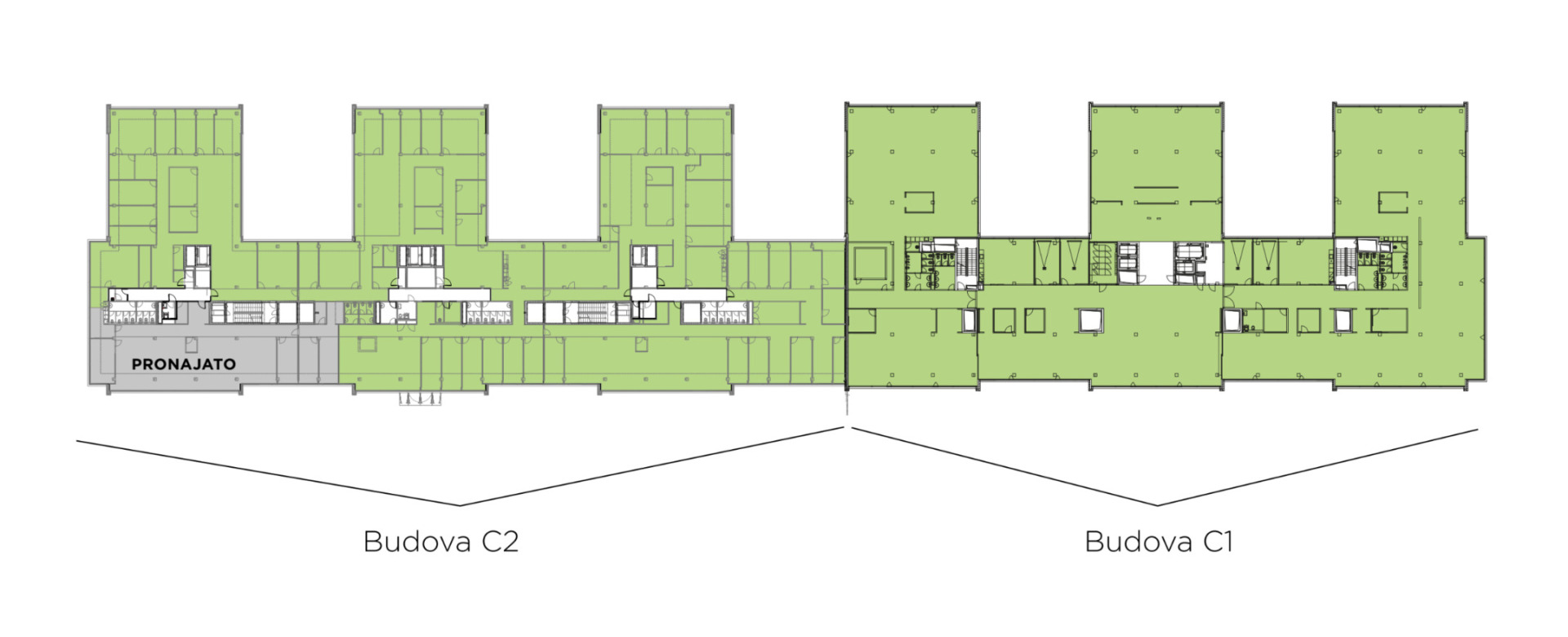 The CITY WEST C1 and C2 office project with a leasable area of 25,637 sqm consists of two office buildings and is located in a modern district in Prague's Stodůlky near the metro station of the same name. The design of both buildings is modern and freely relates to the residential development and family houses in the vicinity. The entire project is also highly functional, energy-efficient and environmentally friendly. The complex is also used by a number of retail and service operators who provide quality service for employees and residents in the areas of dining, general shopping and other daily needs. An indisputable advantage of the building is its excellent transport accessibility. The location is well accessible by public transport, it is directly at the metro station B - Stodůlky with connecting bus connections. Easy accessibility by car is provided by the D5 motorway, the Prague ring road and the airport. For employees commuting by car is provided outdoor and underground garage parking.