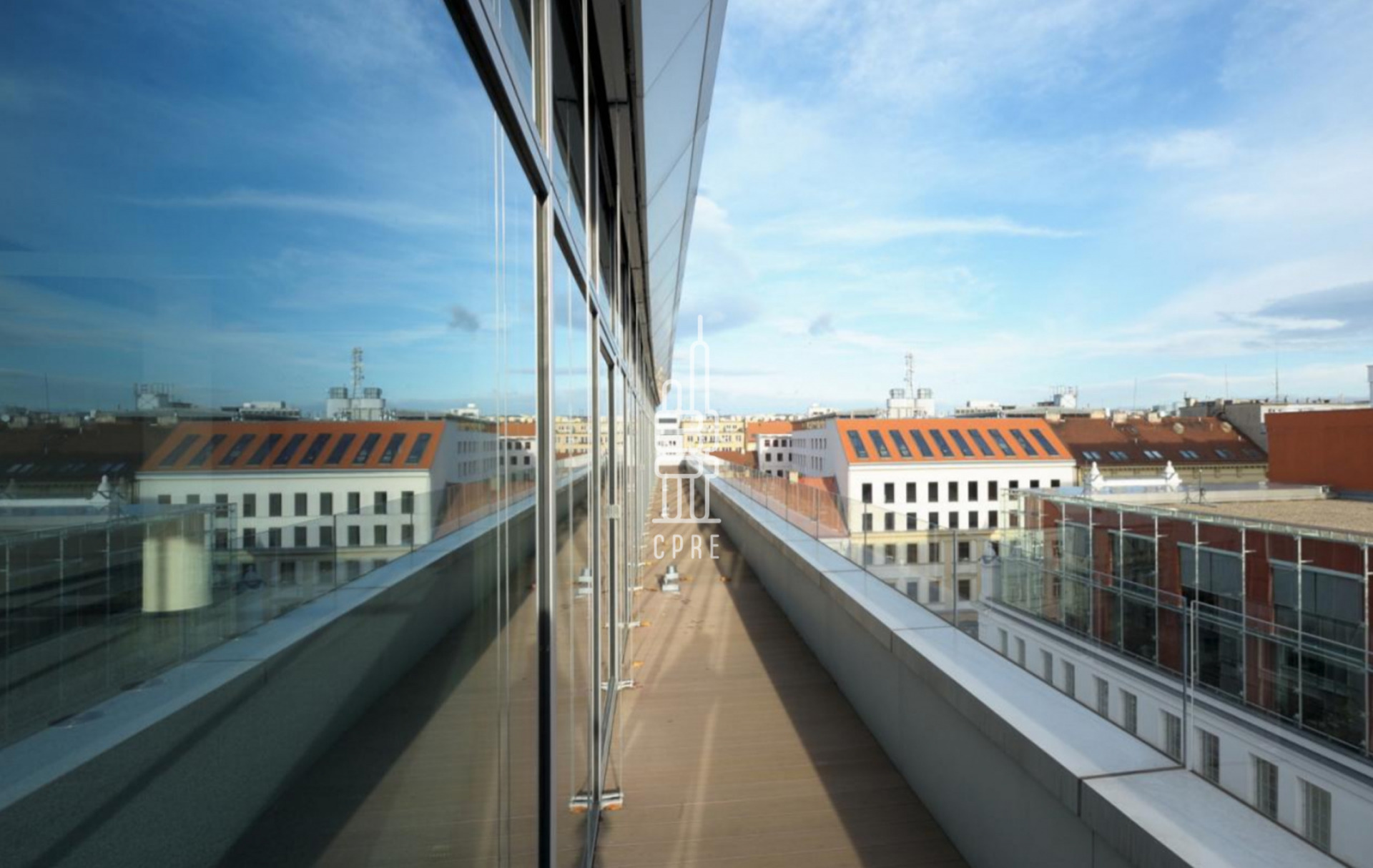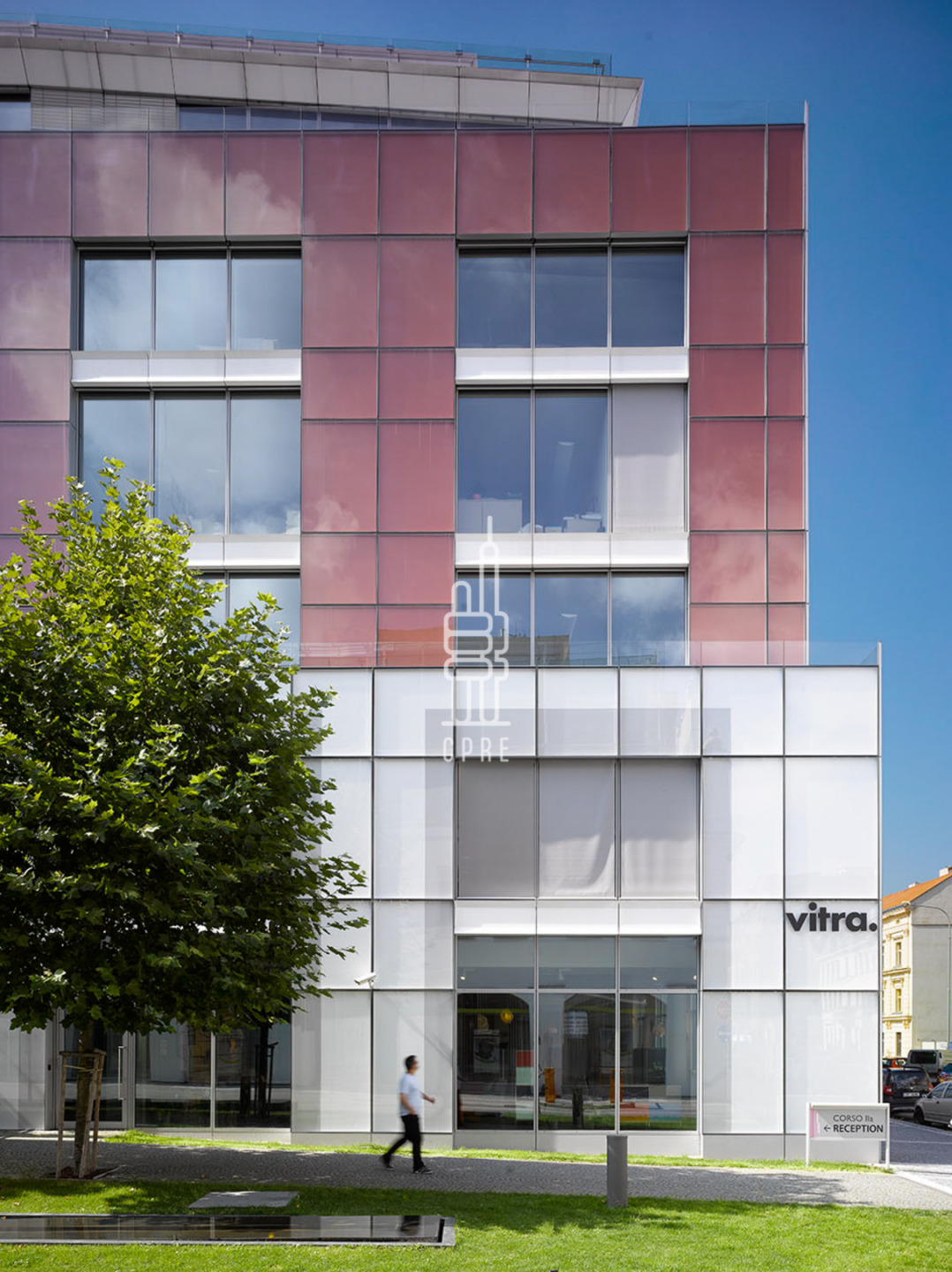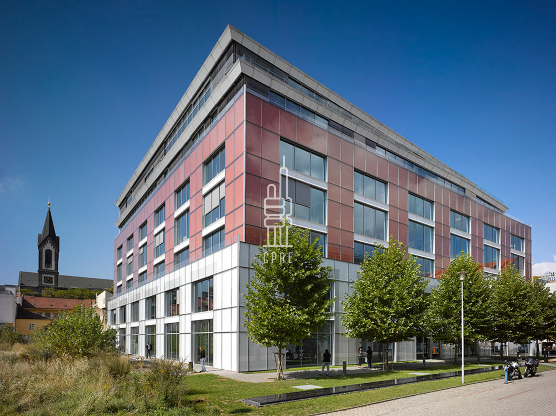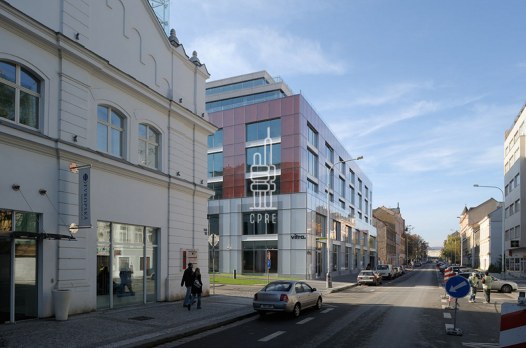 The CORSO II A office building, built in 2007-2008, is located in Křižíkova Street in Karlín, in the neighbourhood of the successful Corso Karlín project. The author of the project is the world-famous Spanish architect Ricardo Bofill. It is a seven-storey building with an irregular plan and a slightly curved eastern facade. The top two floors are glazed to full height. There are sloping terraces on the 3rd and 6th floors.