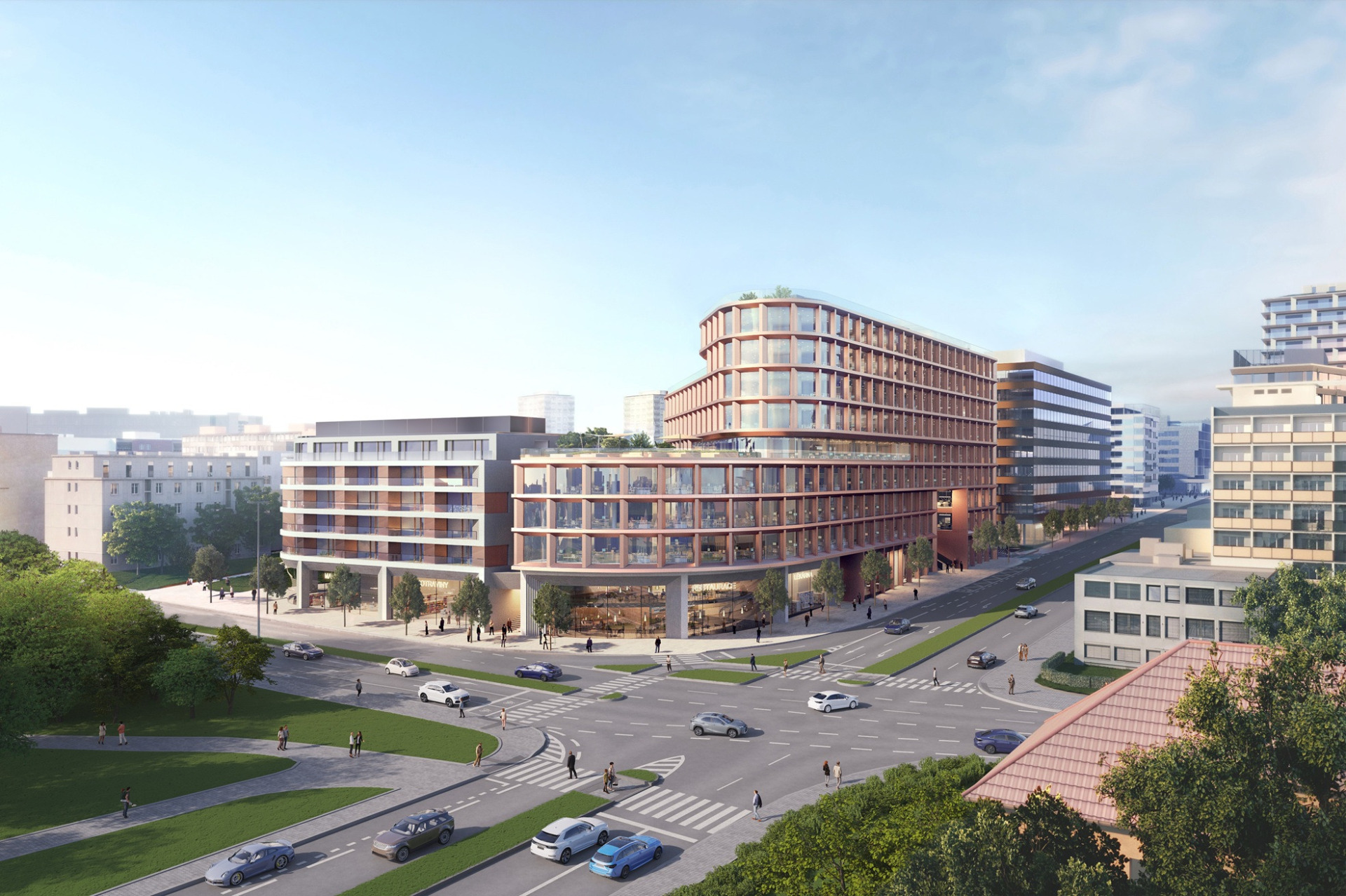 Orion is a newly emerging multifunctional building combining offices, shops, and apartments for rent, which will be built in the center of Brumlovka, on the corner of Vyskočilova and Michelská streets. Orion, with a total area of 28,000 m², will offer 18,000 m² of modern offices on eight above-ground floors, nearly 2,600 m² of retail space, 134 fully equipped rental apartments with balconies, and 491 underground parking spaces, including charging stations for electric cars. Modern technologies will contribute significantly to the overall comfort of the interiors and the economical and sustainable operation of the building – heat pumps, geothermal wells, photovoltaics, and radiant ceilings, all working together in perfect harmony, complemented by above-standard air exchange with central ionization. Significant features of the building include green roof terraces, a square with a water fountain, greenery, relaxation areas, and landscaping, which will enable further management of accumulated rainwater. In terms of public space, the construction will significantly contribute to the permeability of the area with a unique feature for pedestrians, the Lombard Stairs, strikingly reminiscent of the famous Lombard Street in San Francisco. The building will strive for prestigious LEED PLATINUM and PENB A certification. The first tenants will be able to move in during the first quarter of 2028.