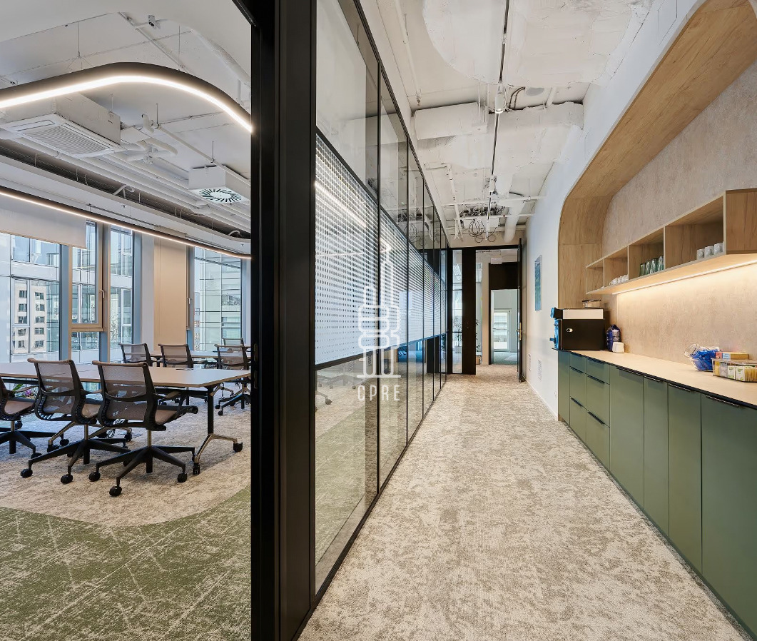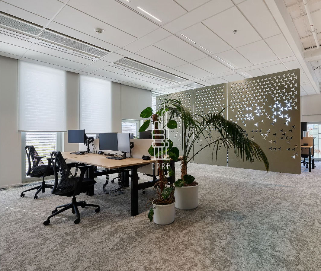 TELEHOUSE offers 18,600 m2 of net office space on 6 floors and approximately 1,100 m2 of retail space. The building meets the highest technological standards thanks to the technologies used, thanks to which it has been awarded the BREEAM Very Good certificate. Modern ceiling beams and floor convectors are used for heating and cooling. The building has opening windows with external roller shutters.